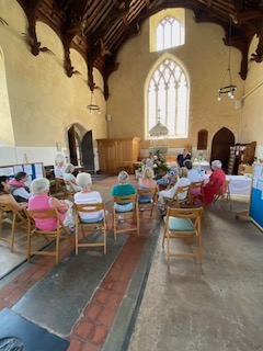 However, we are much more. The fitting of casters onto our pews has enabled us to use the fabulous space more easily and creatively, including a village celebration of VE Day with the lighting of the beacon situated in the churchyard , Pilates and Soundbath, sustainable flowers demonstration, church fundraising lunch to name a but a few.